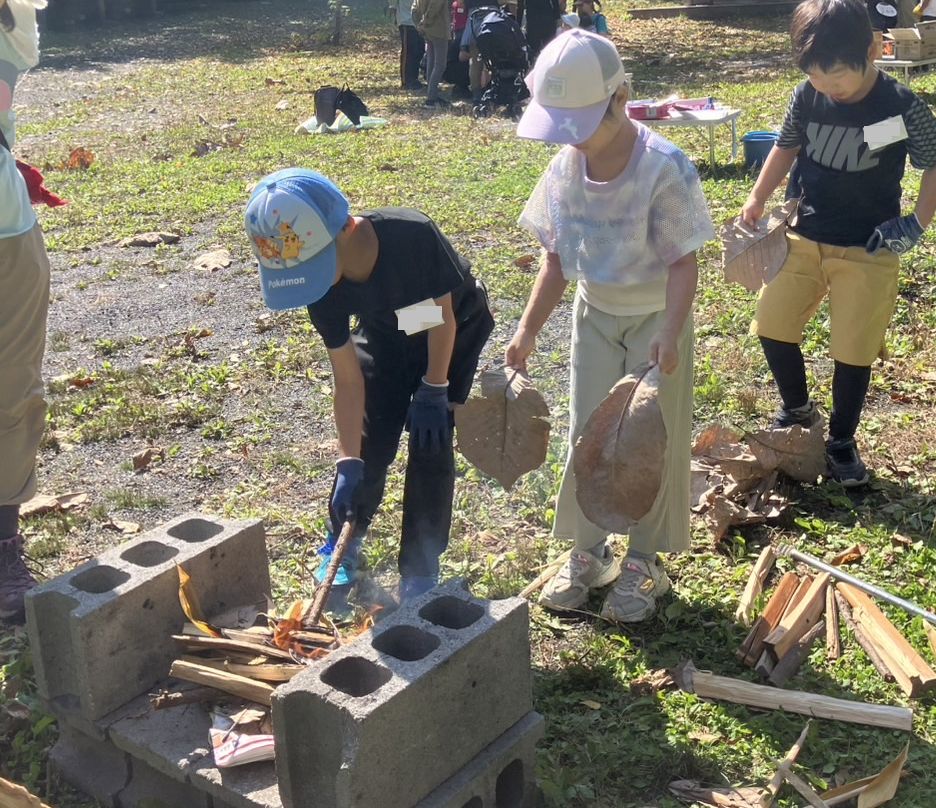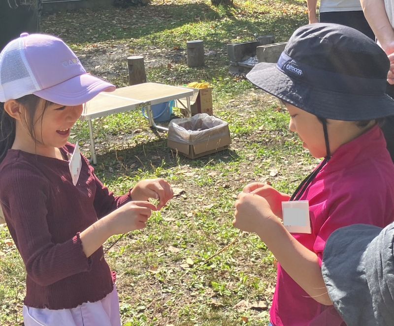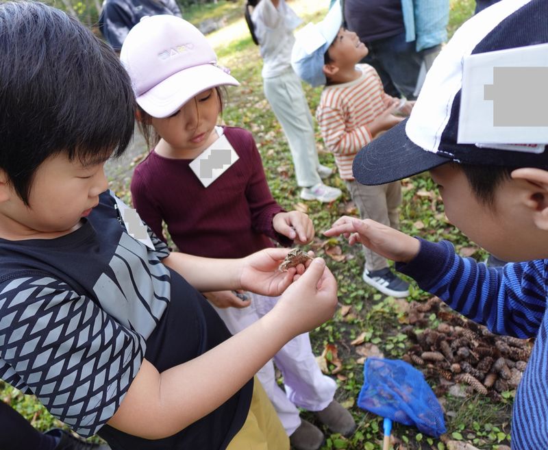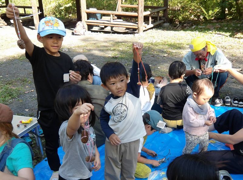 先日、4日(土)はわんぱく遊び隊!木の実あそびと、焼きイモ♪でした。10月なのに暑いくらいの良い天気です。