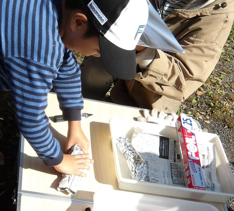 サツマイモをアルミハクで巻いて~