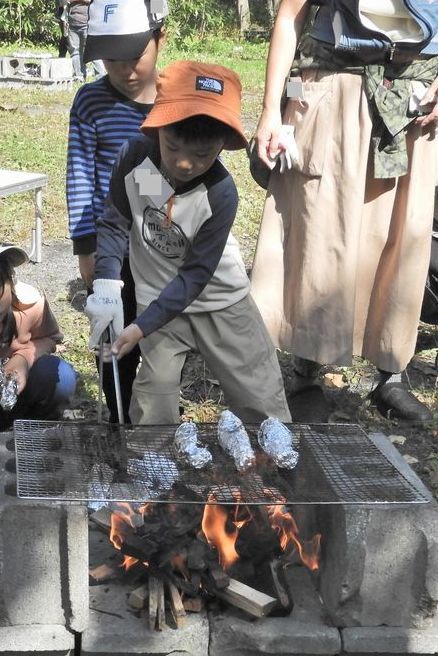 自分たちでつけた火で、焼き芋を焼くよ!