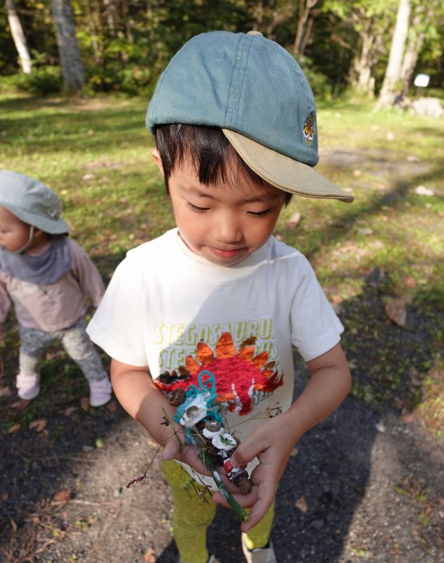 秋の一日を楽しみました。今年は、ドングリなどの木の実が少ないけど、これから紅葉と落ち葉の季節、葉っぱ拾いも楽しみですね。