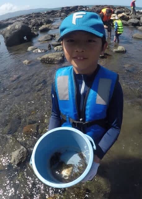 波が高いので、ちょっと短めでしたが、磯遊び楽しみました♪