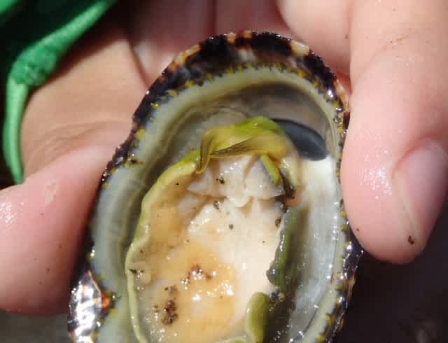 昼休み~集めたカサガイやタマキビガイの仲間をみそ汁にしちゃいます!