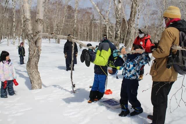 昨日4月9日は、親子自然ウオッチングわんぱく遊び隊!中山峠周辺で「春の雪山ハイキング!」でした。